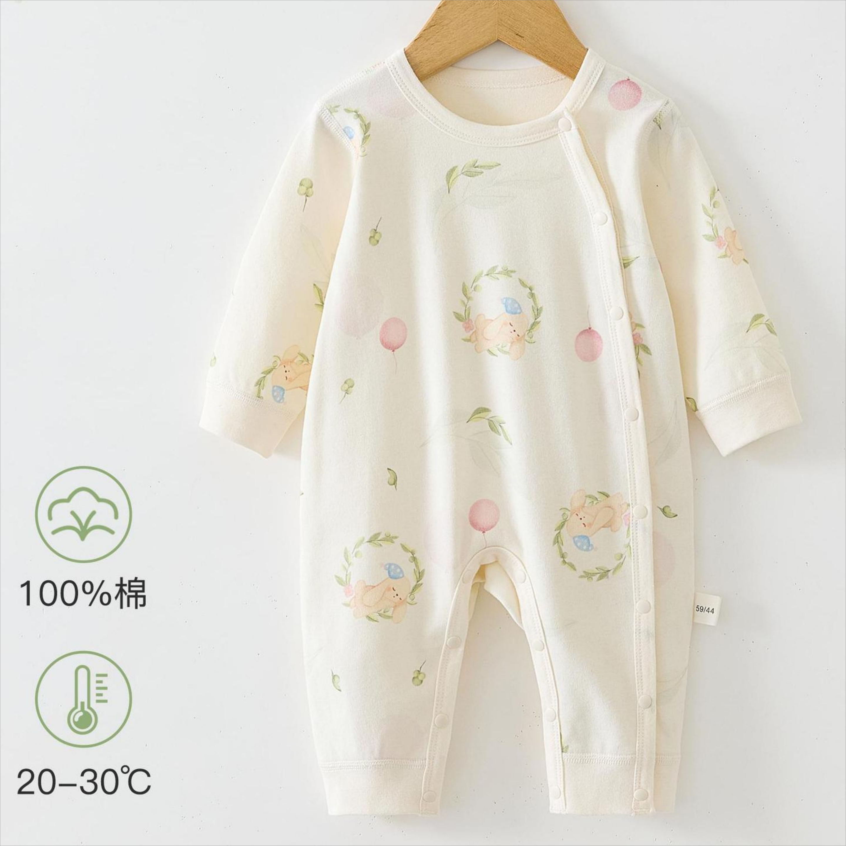 Купить Детские цельнокроеные весенне-осенние комбинезоны из чистого хлопка класса а с длинными рукавами для новорожденных, тонкие газовые ползунки, детские цельные пижамы на таобао