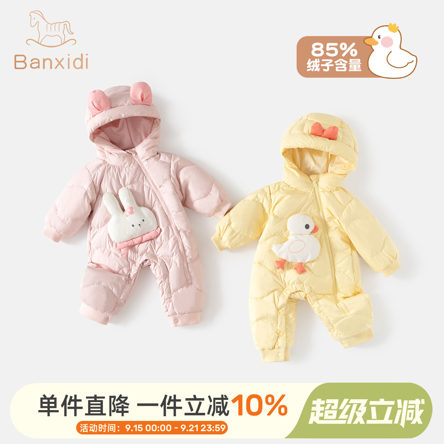 Купить [Три защиты] Детский пуховик, цельная зимняя одежда для малышей, одежда для прогулок на белом утином пуху с капюшоном, осенне-зимний комбинезон на таобао