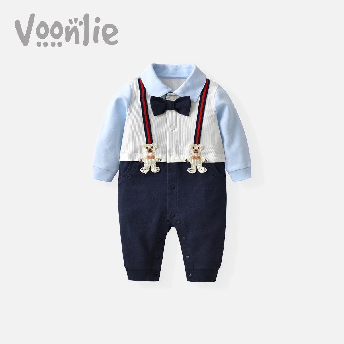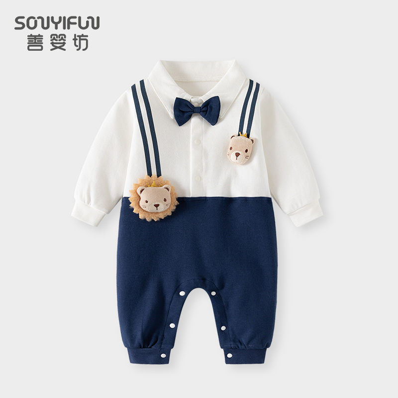 Купить Детская цельная осенняя одежда для младенцев, весенний мужской комбинезон для новорожденных, молодой мастер, полнолуние, сто дней, джентльменский хлопковый комбинезон для прогулок на таобао