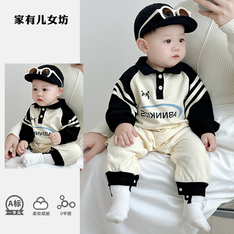 Купить Осенняя одежда, западный стиль, комбинезон для маленьких мальчиков, цельный комбинезон для маленьких мальчиков, весенне-осенняя одежда для малышей, детская осенняя одежда для прогулок в полнолуние на таобао