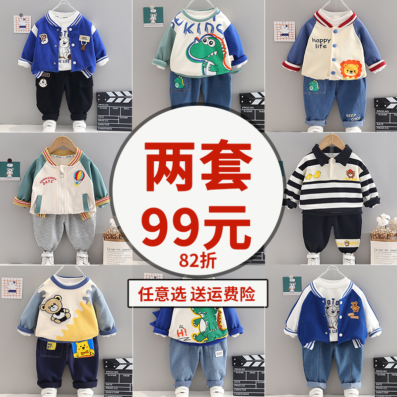 Купить Детский весенне-осенний костюм с длинными рукавами и лацканами, модная одежда для годовалых мальчиков, осенняя одежда для прогулок, раздельный костюм-двойка на таобао