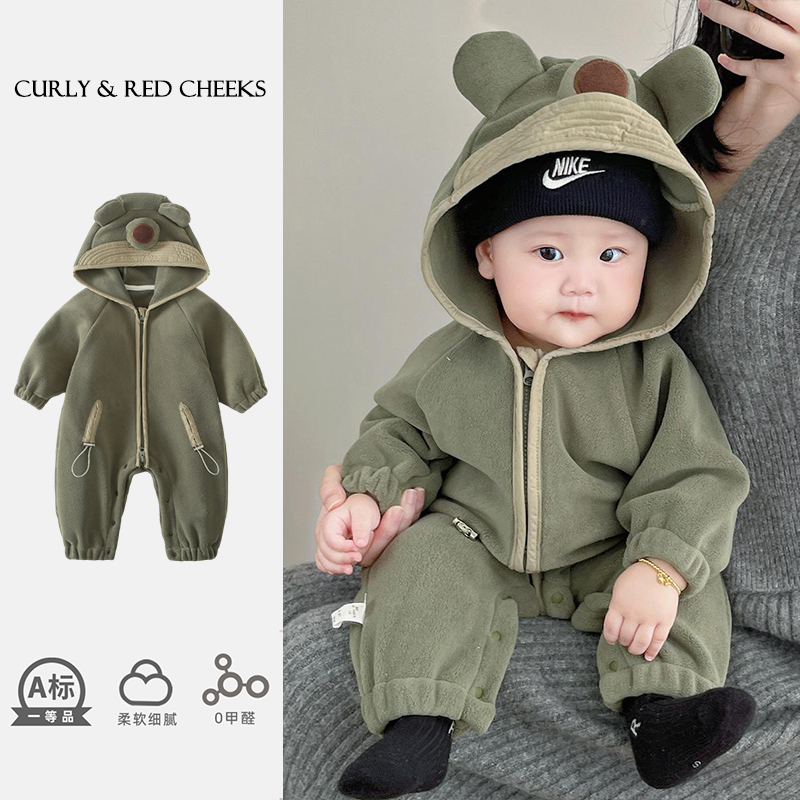 Купить [Фабричные товары tail] Детская цельная весенне-осенняя двухслойная хлопчатобумажная внутренняя и верхняя одежда с капюшоном, комбинезон-ползунки на таобао