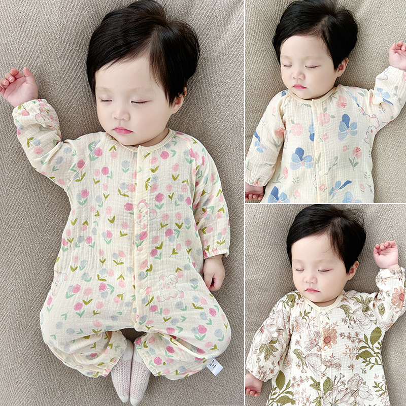 Детские цельнокроеные весенне-осенние комбинезоны из чистого хлопка класса а с длинными рукавами для новорожденных, тонкие газовые ползунки, детские цельные пижамы