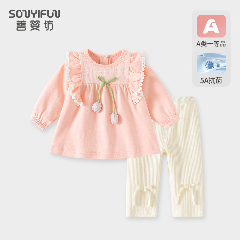 Купить Милый костюм для годовалого ребенка, женский комбинезон, футболка, детская весенне-осенняя одежда из двух предметов, хлопковая одежда для прогулок 1 на таобао