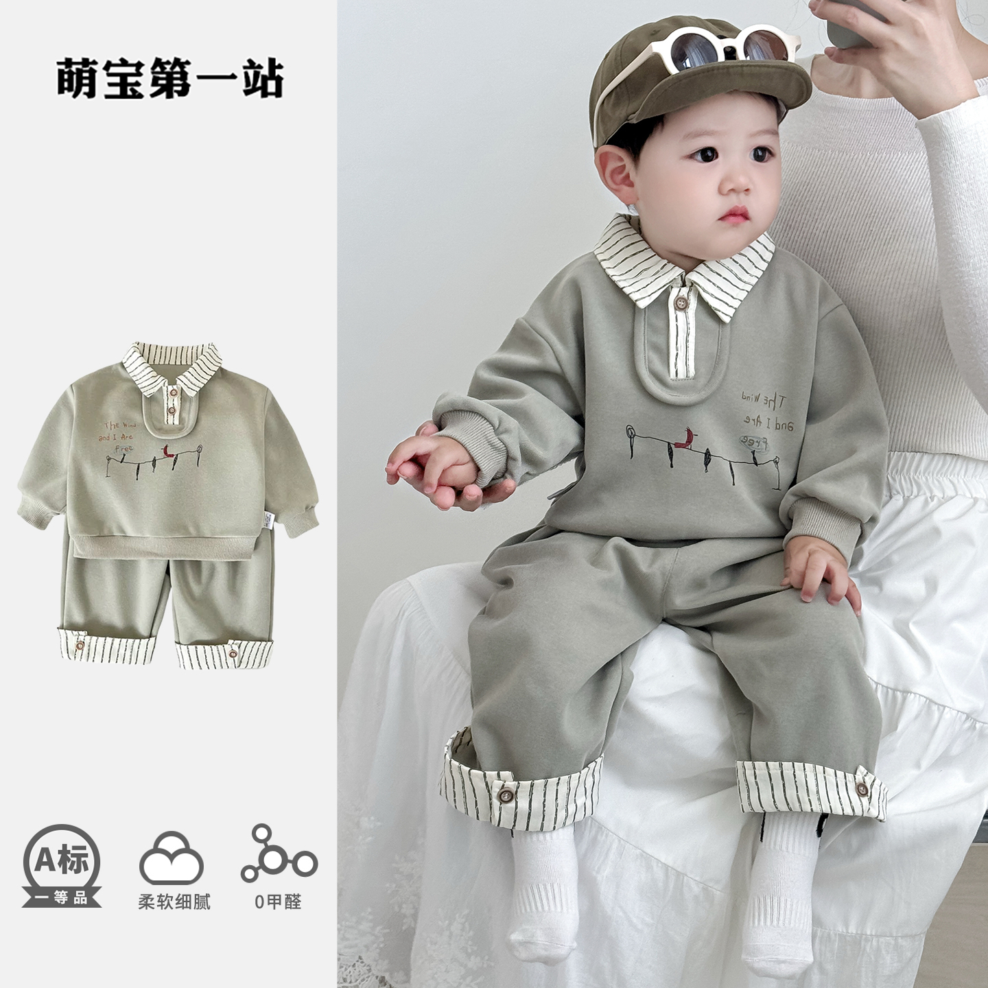 Купить Детская одежда, весенне-осенний раздельный костюм, новинка 2025 года, мужские и женские детские комбинезоны, осенняя одежда для младенцев из двух предметов на таобао