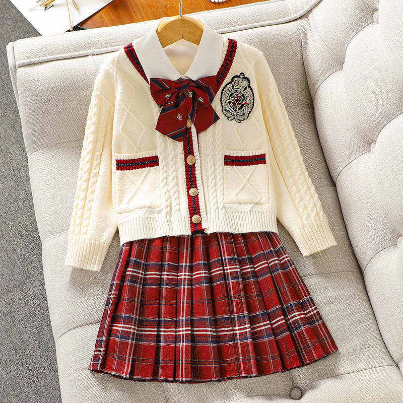 Осенний форменный костюм jk для девочек в стиле колледжа, новинка 2025 года, детский вязаный кардиган, плиссированная юбка, весенне-осенний костюм-тройка