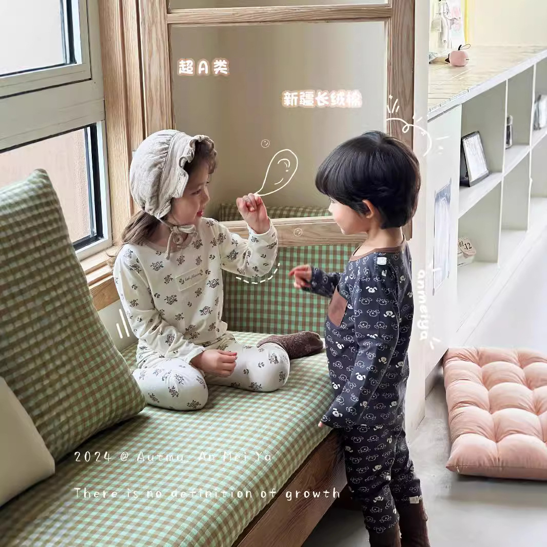 Нижнее белье для детей из чистого хлопка, нижнее белье, детский теплый костюм, осенняя одежда, детская одежда, детская стеганая одежда с разрезом