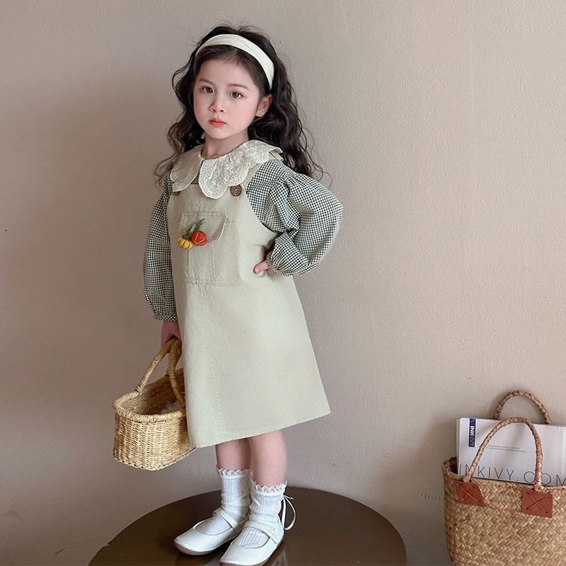 СЛЕДУЮЩЕЕ НАЗВАНИЕ: корейская версия жилета с юбкой для девочек, костюм с кукольным воротником, платье-рубашка в клетку в западном стиле, костюм-двойка