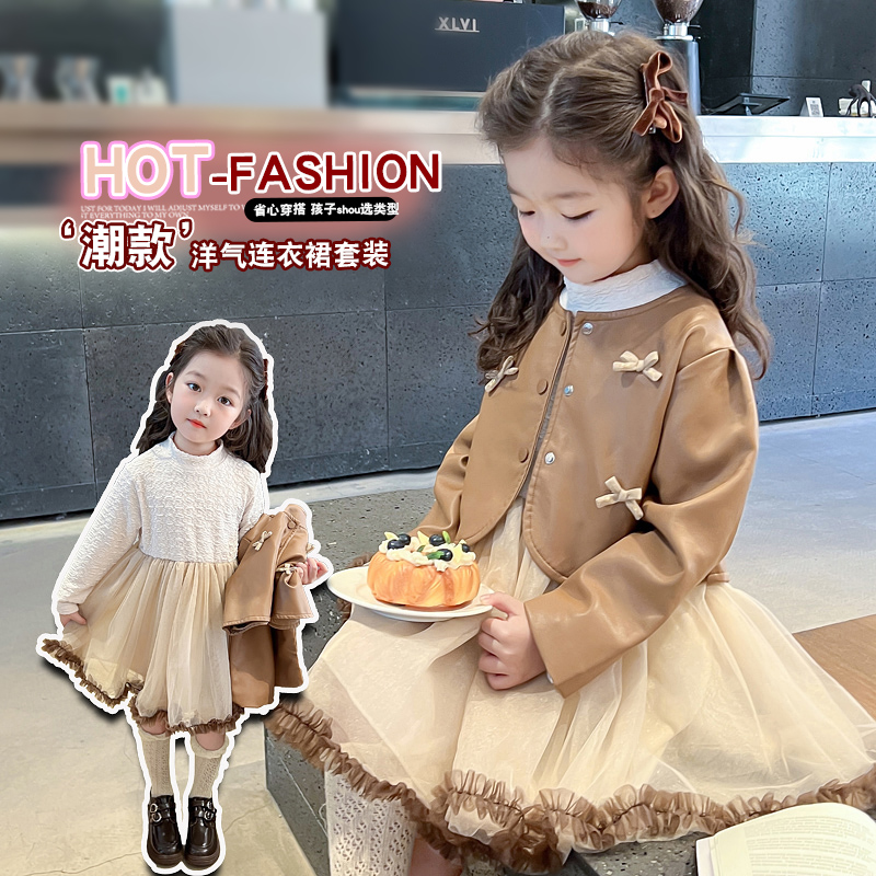 Купить Платья для девочек во французском стиле, весенне-осенние модели, новинка 2025 года, детское платье принцессы в западном стиле, детская жилетка, юбка, костюм-двойка на таобао