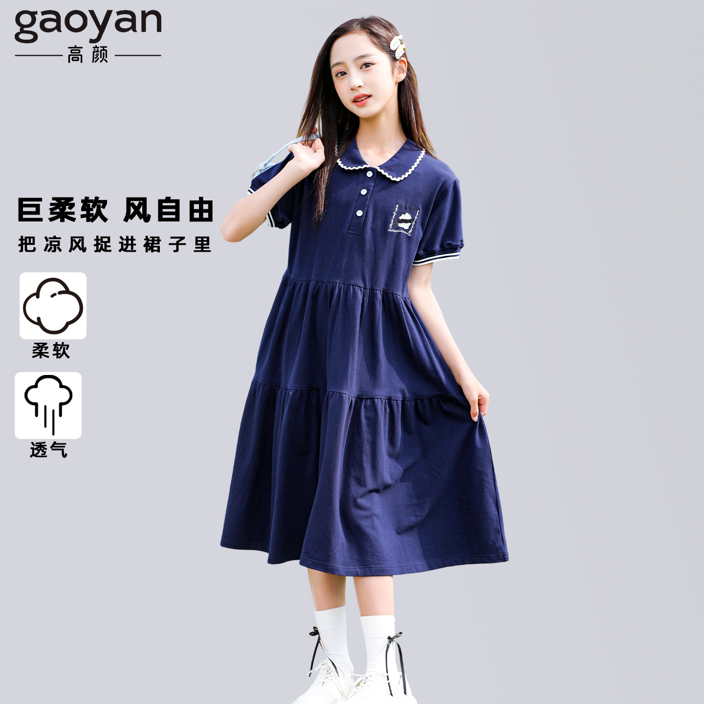 Купить Большое детское платье для девочек, новинка лета 2025 года, для девочек младших классов средней школы, для спорта и отдыха, в стиле колледжа, с кукольным воротником, тонкая юбка на таобао