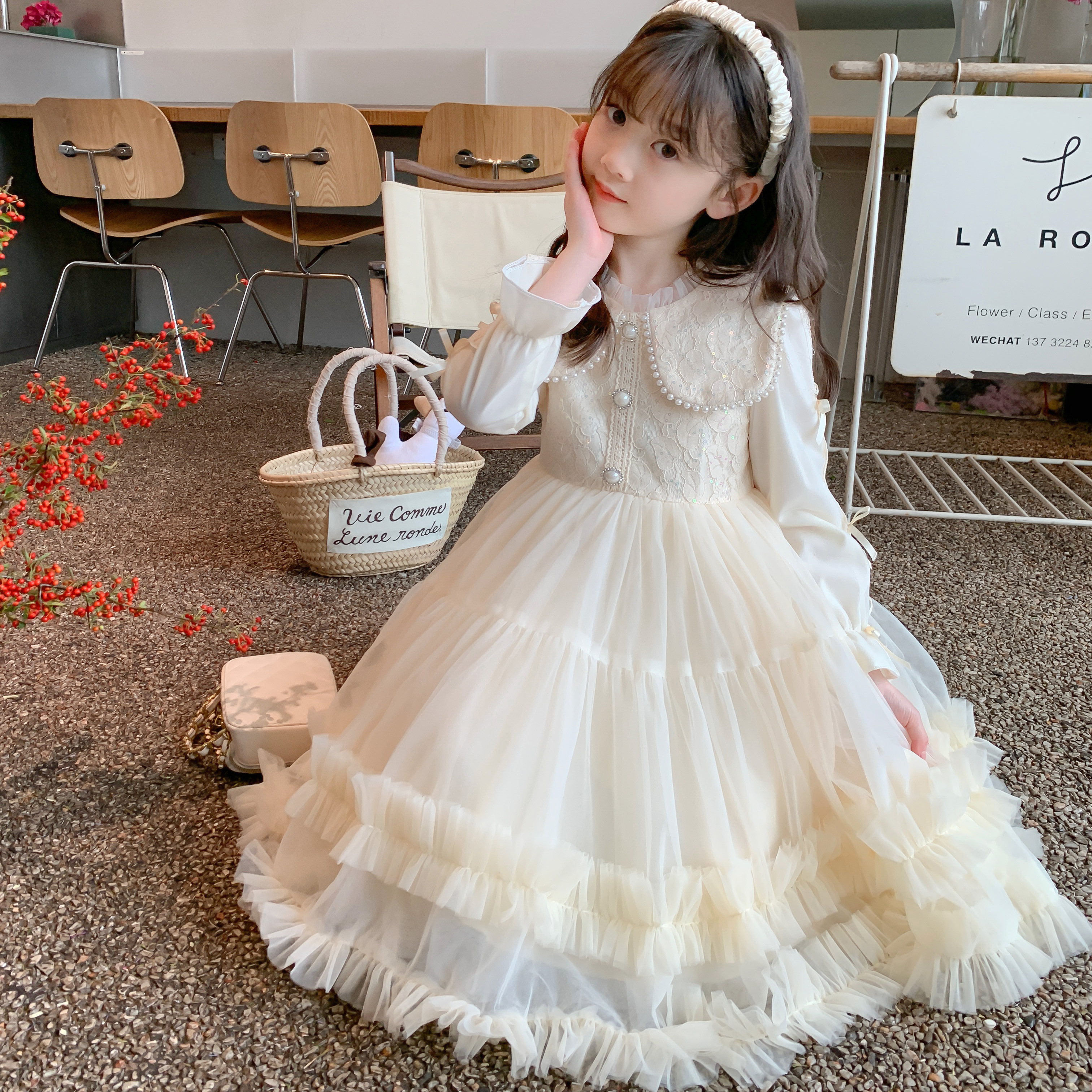 Купить Платье принцессы для девочек, новинка 2025 года, осеннее платье в западном стиле, очень красивое платье для маленьких девочек, осенняя детская юбка-сетка на таобао