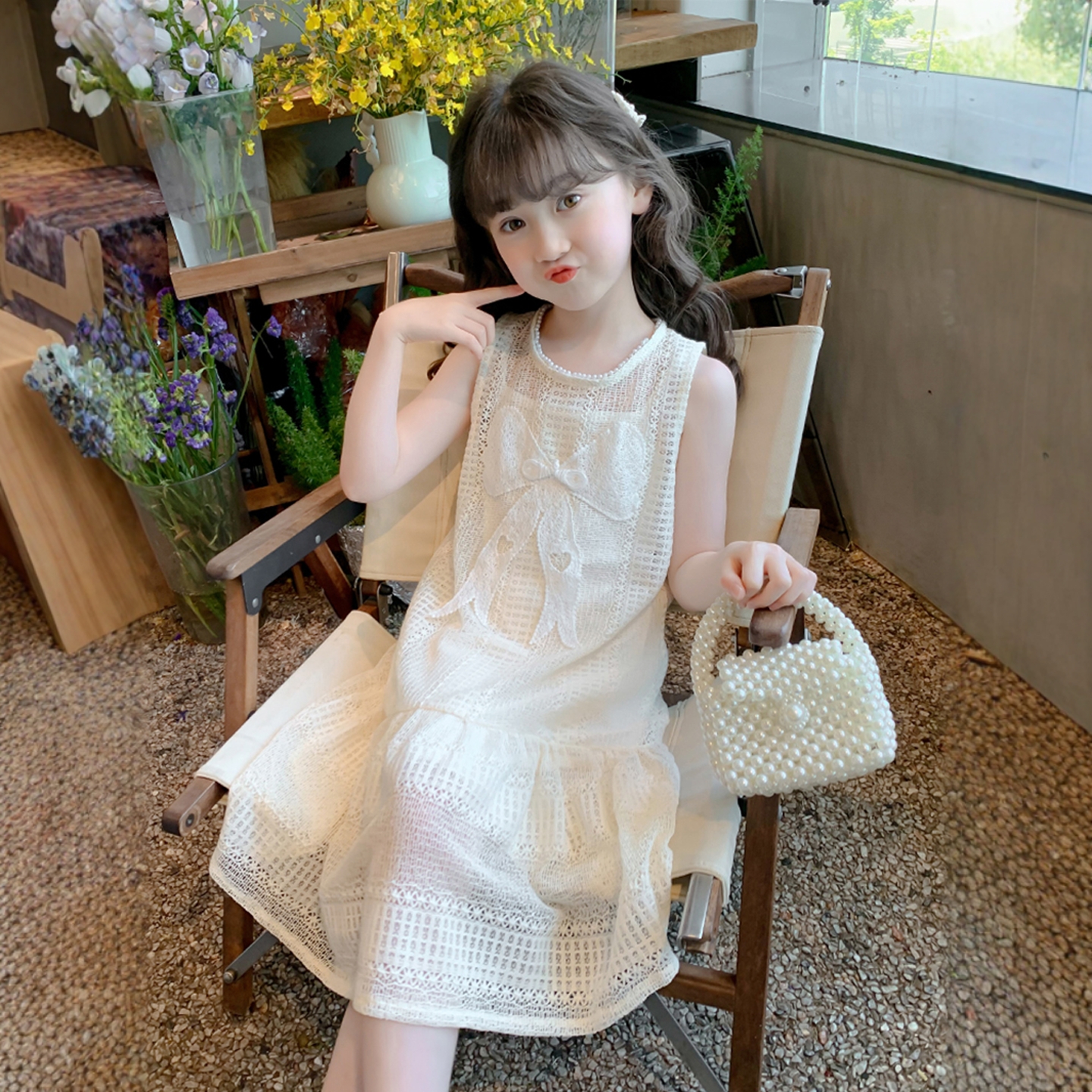 Платье для девочек, летний жилет без рукавов, однотонная хлопковая юбка, новинка 2025 года, корейская версия большого детского платья принцессы