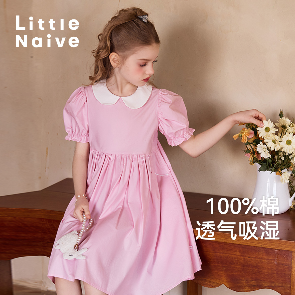 Купить детское летнее хлопковое светло-розовое платье bonbon et bonbon с кукольным воротником в цветочек, плиссированные детали с на таобао