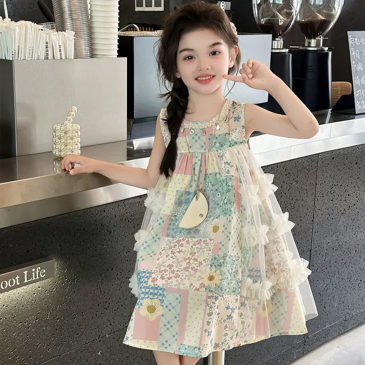 Платье-жилет для девочек, лето 2025, новая детская пляжная юбка, летнее платье принцессы для девочек в корейском стиле, платье в западном стиле