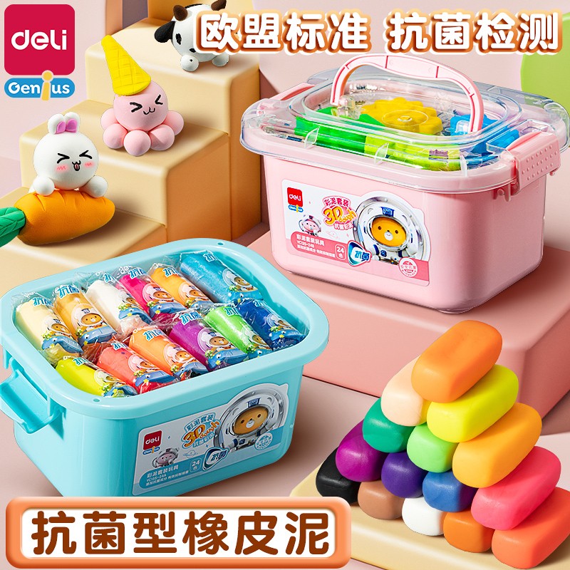Купить Антибактериальный пластилин Deli, безопасный и без запаха, специальная цветная глина для детского сада, 24 цвета и 12 расцветок, набор игрушек ручной работы в коробке для учащихся начальной школы, ультралегкая упаковка для формочек из глины на таобао