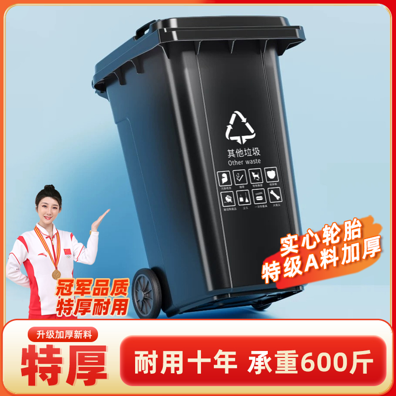 Очень толстый мусорный бак для мусора на открытом воздухе объемом 240 литров, коммерческий крупнотоннажный санитарный прицеп, общественная собственность на открытом воздухе