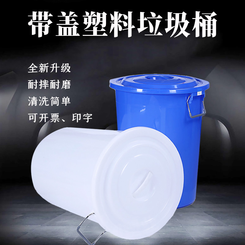 Купить Утолщенное большое мусорное ведро заводская наружная санитарная классификация пластиковое ведро коммерческое бытовое кухонное круглое ведро с крышкой ведро на таобао