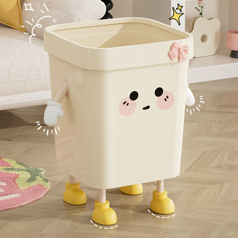 Симпатичный мусорный бак для домашнего хозяйства 2025 новая гостиная спальня мультяшный съемный мусорный бак на колесиках с крышкой высокого качества