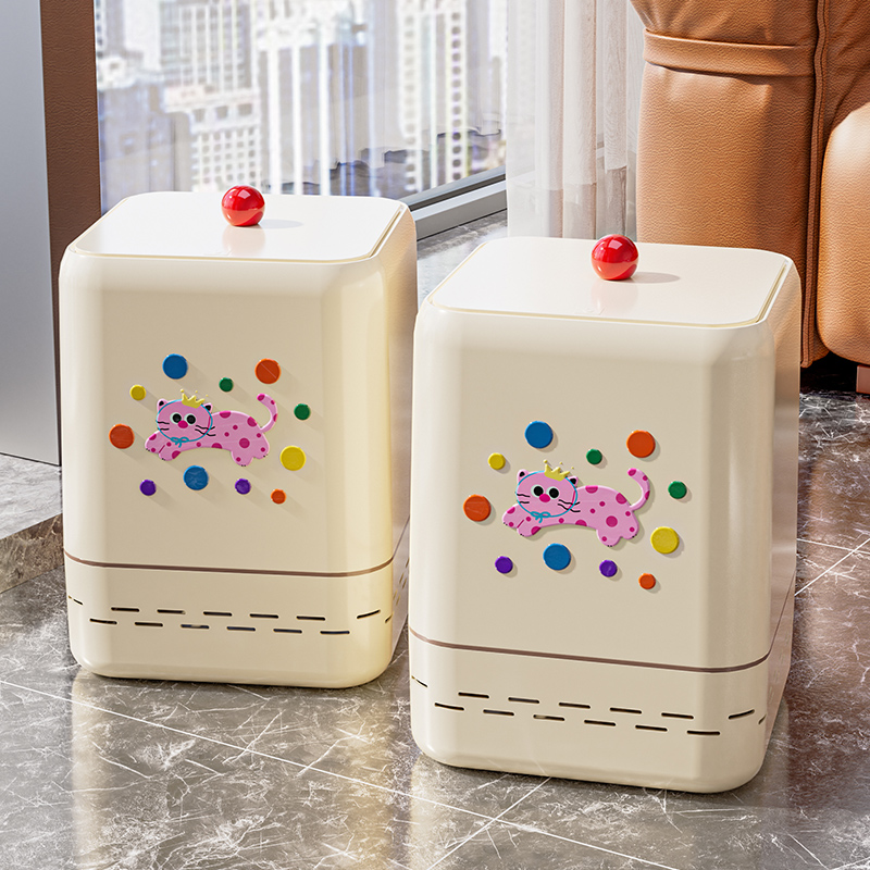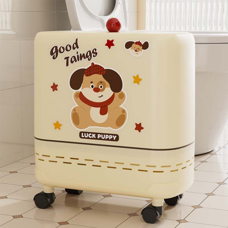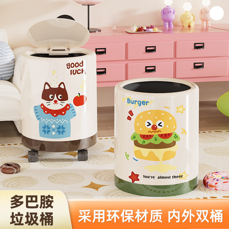 Симпатичный мусорный бак для домашнего хозяйства 2025 новая гостиная спальня мультяшный съемный мусорный бак на колесиках с крышкой высокого качества
