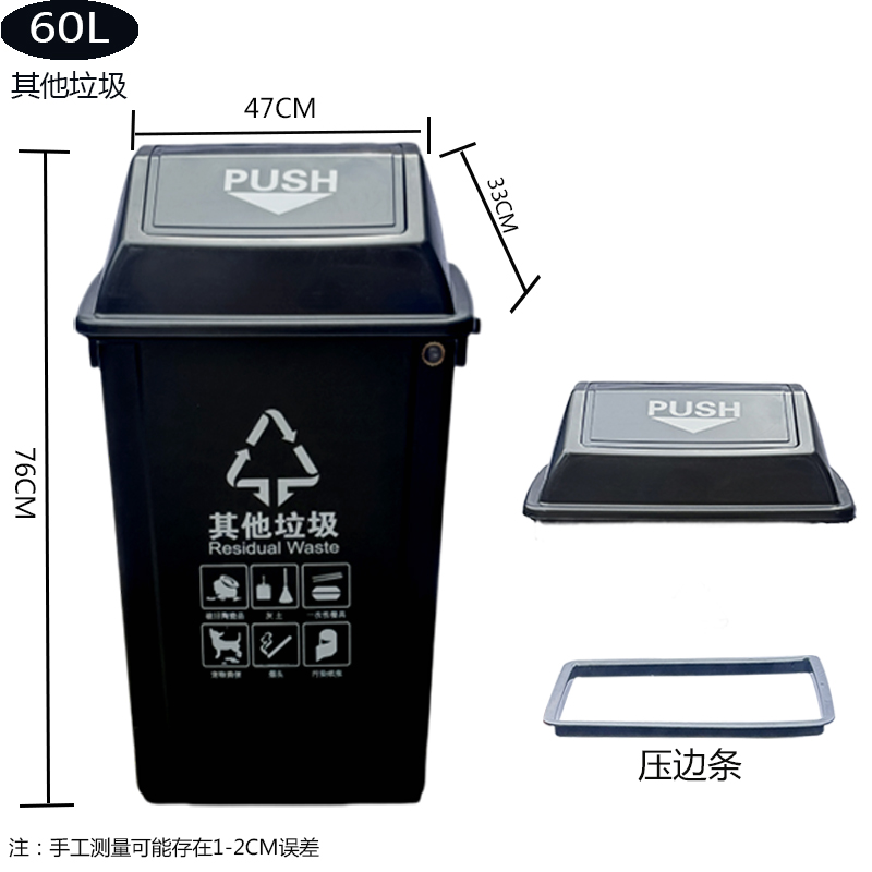 Новый национальный стандартный мусорный бак для сортировки мусора бытовой коммерческий гостиничный школьный влажный и сухой кухонный подвесной туалет объемом 100 литров 60Л