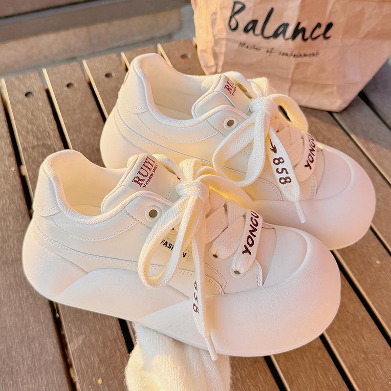 Повседневная женская обувь на толстой подошве, универсальная старая обувь из воловьей кожи, дышащая и легкая спортивная обувь, трендовая белая осенняя обувь 2025 года