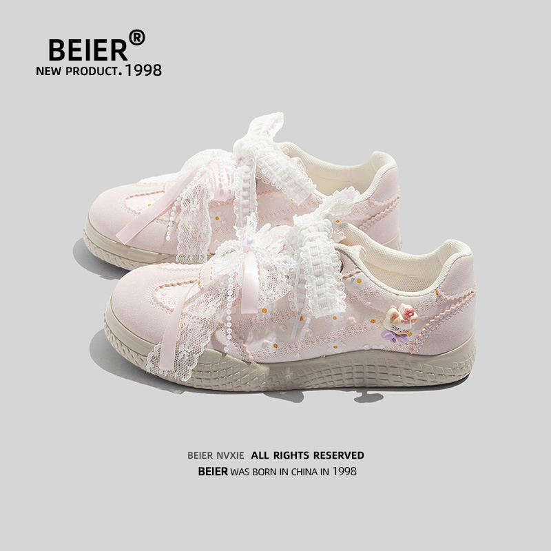 Купить Женские дышащие кроссовки BEIER розового цвета; новинка 2025 года; сезон осень-лето; повседневная белая обувь с низким вырезом на толстой подошве; немецкая обувь для тренировок на таобао