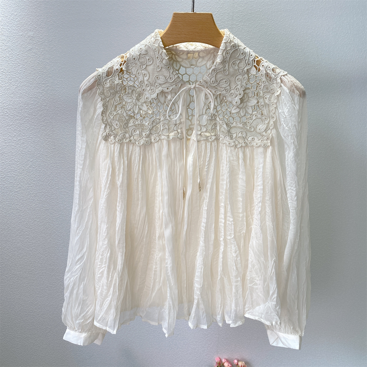 Купить Белая рубашка с французским кружевом, женская ранняя осень 2025, новинка, свободный топ большого размера, высококачественный шикарный топ на таобао