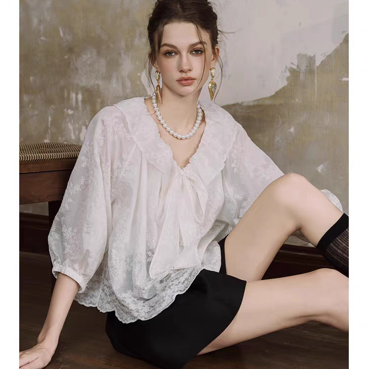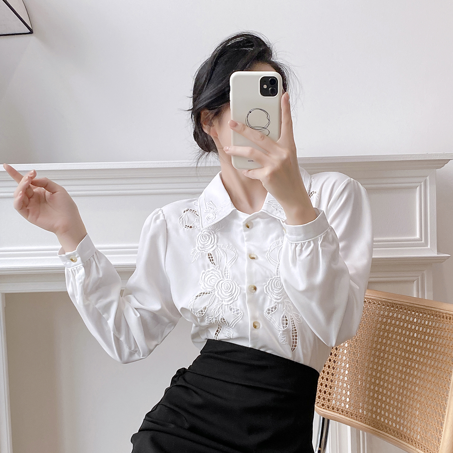 Камила Френч вышитая полая рубашка женская осень 2025, новая темпераментная рубашка с длинными рукавами для пригородных поездок
