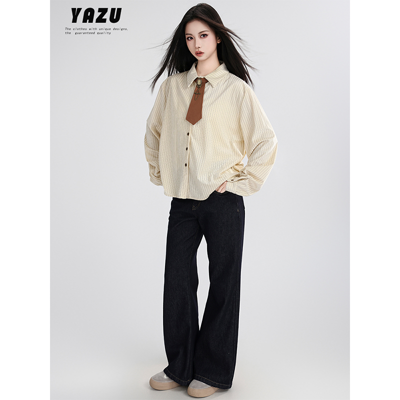 UR2025 осенняя новая стильная женская очаровательная блузка с галстуком в полоску на одну шею, рубашка UWG250225