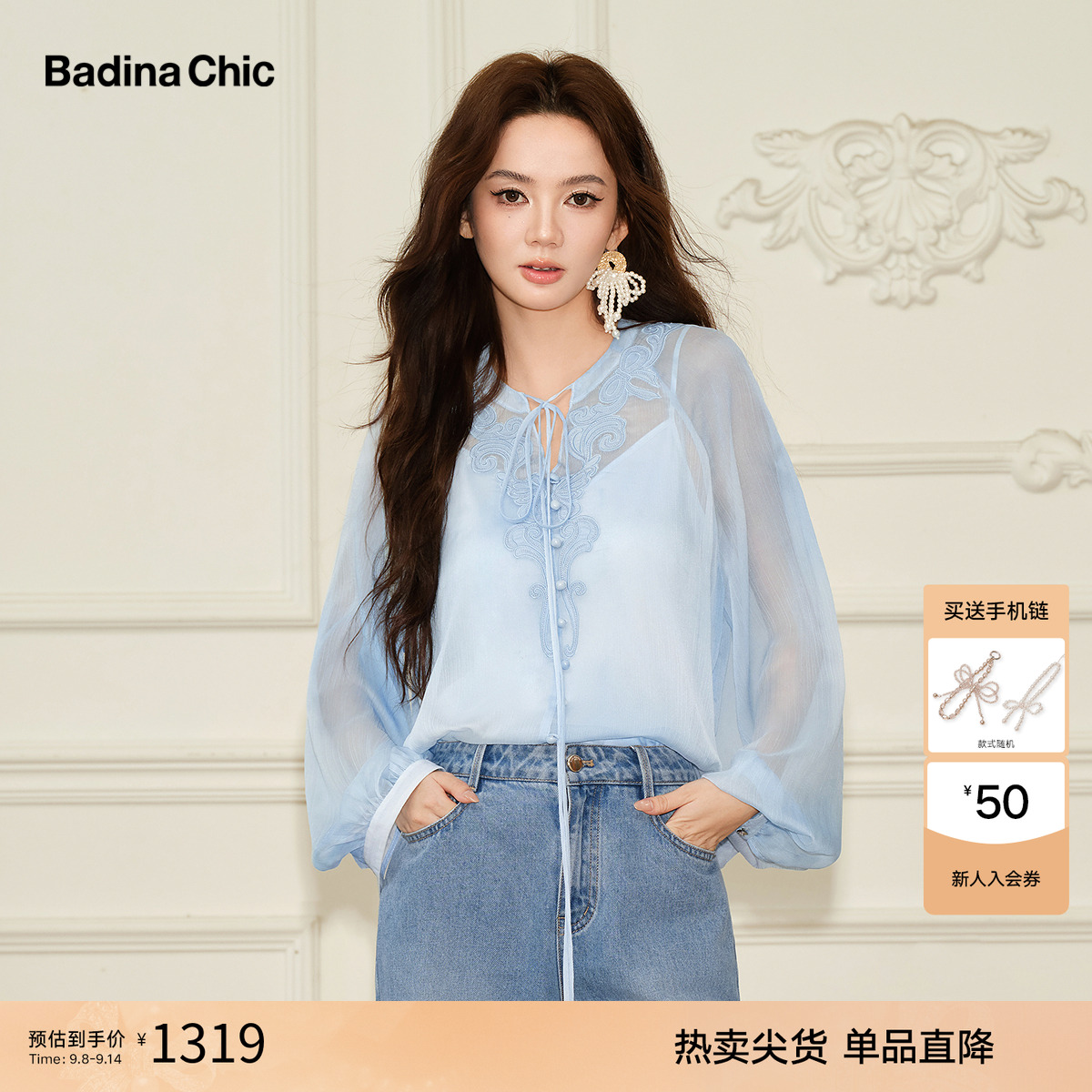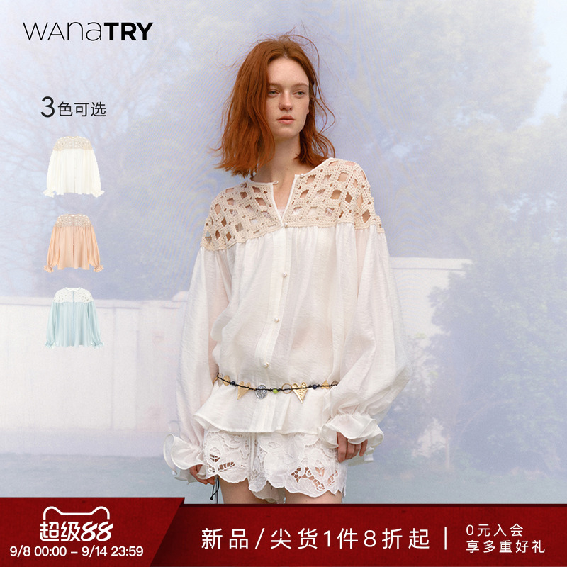 Купить Камила Френч вышитая полая рубашка женская осень 2025, новая темпераментная рубашка с длинными рукавами для пригородных поездок на таобао