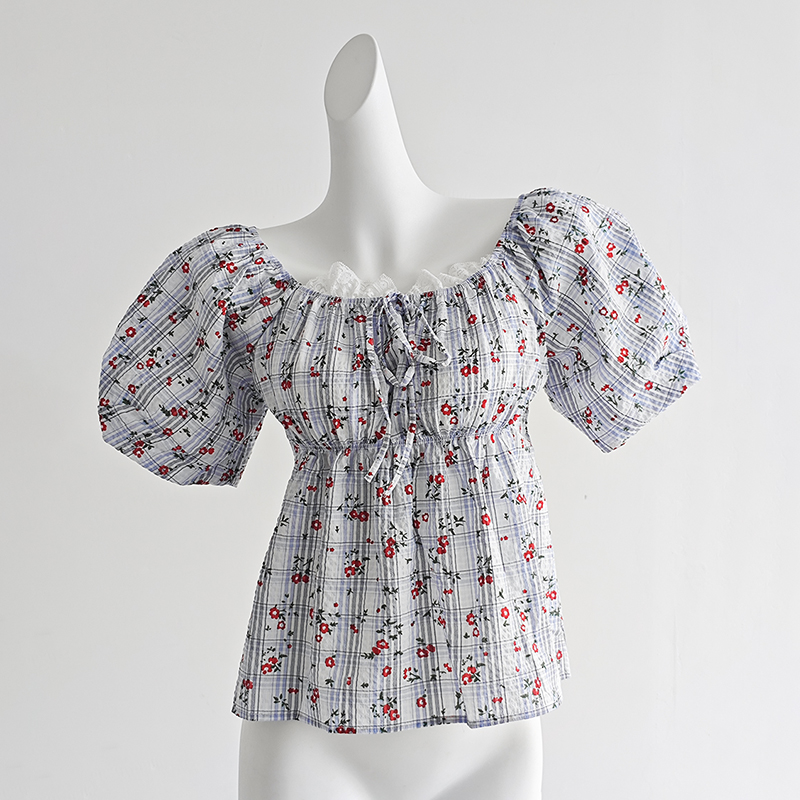 Купить Летняя новинка с кукольным воротником в западном стиле, уменьшающая возраст рубашка с короткими рукавами и пузырьками, дизайнерская нишевая универсальная рубашка с короткими рукавами на таобао