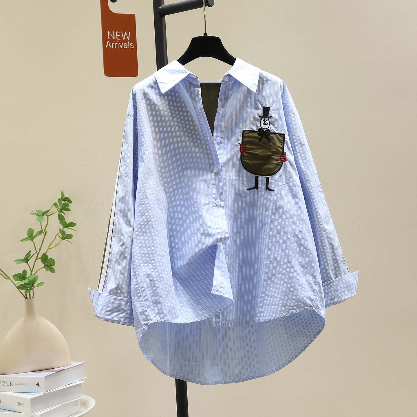 Купить Маленькая синяя полосатая солнцезащитная рубашка с длинными рукавами в виде лесных ягод, женская осенняя новая свободная рубашка wild high-end chic на таобао