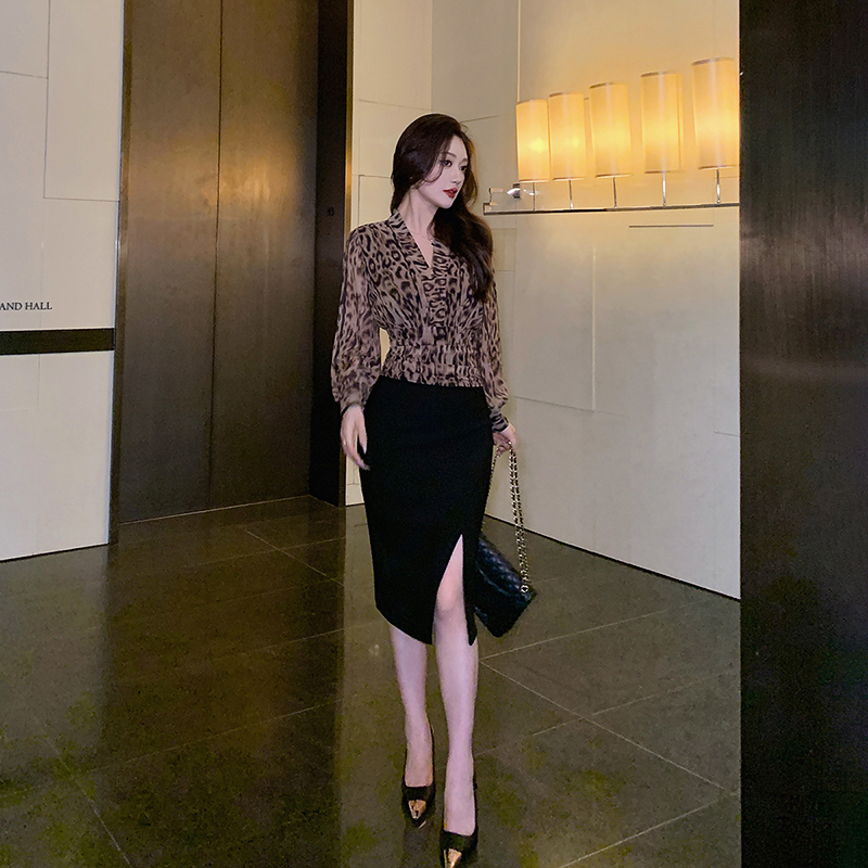 Купить Lin Guan Guan Французская шифоновая рубашка с леопардовым принтом в стиле ретро, женская рубашка с длинными рукавами в стиле ранней осени во французском мелкобуржуазном стиле на таобао