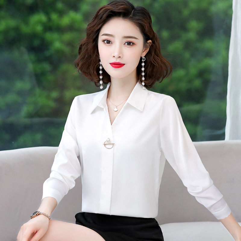 Чистая знаменитость в такой же шифоновой рубашке, весенний женский новый французский свободный женский топ с V-образным вырезом и длинными рукавами из чистого шелка.