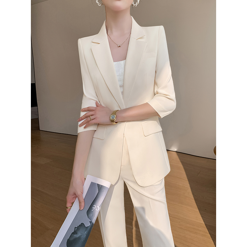 Купить Высококачественный костюм, женский костюм 2025 года, новые летние тонкие широкие брюки, маленький профессиональный официальный летний костюм на таобао