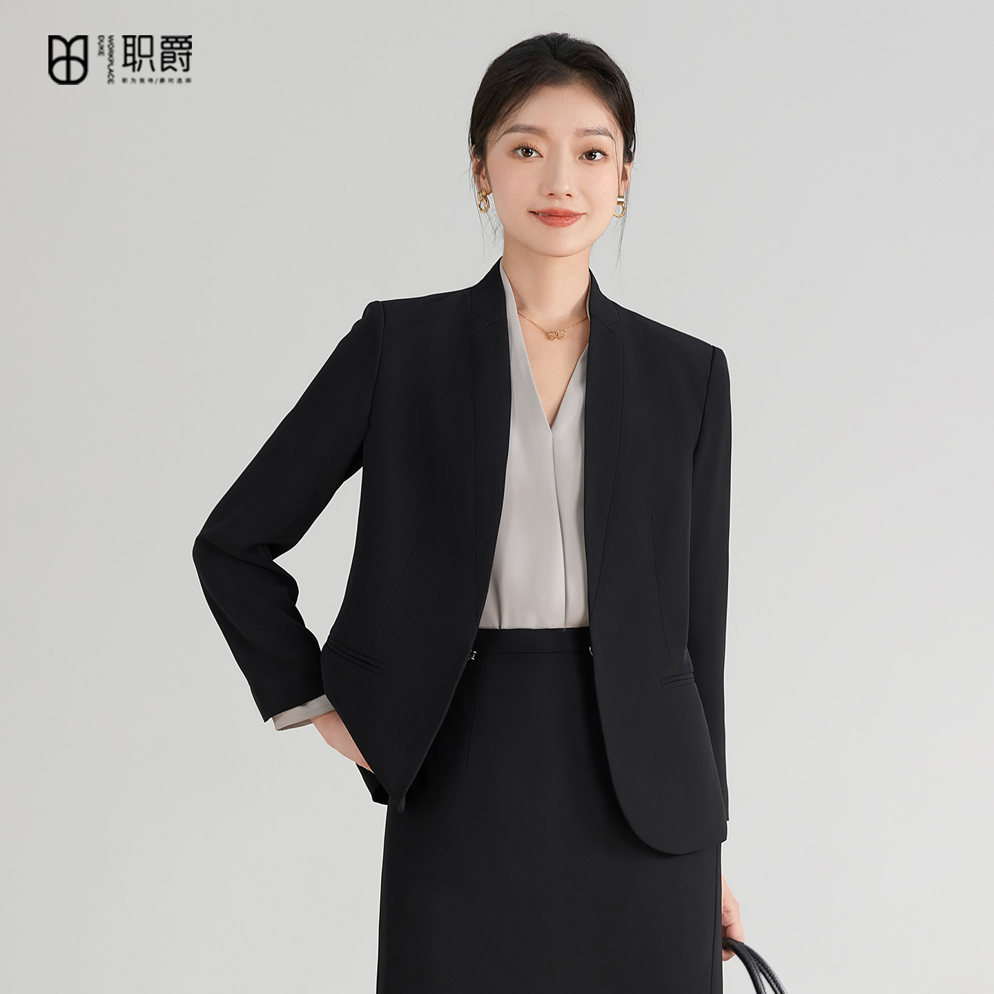 Купить Черный костюм, женская профессиональная юбка, официальная одежда, маленькая рабочая одежда, костюм без воротника для собеседования в UGC, пригородный костюм на таобао