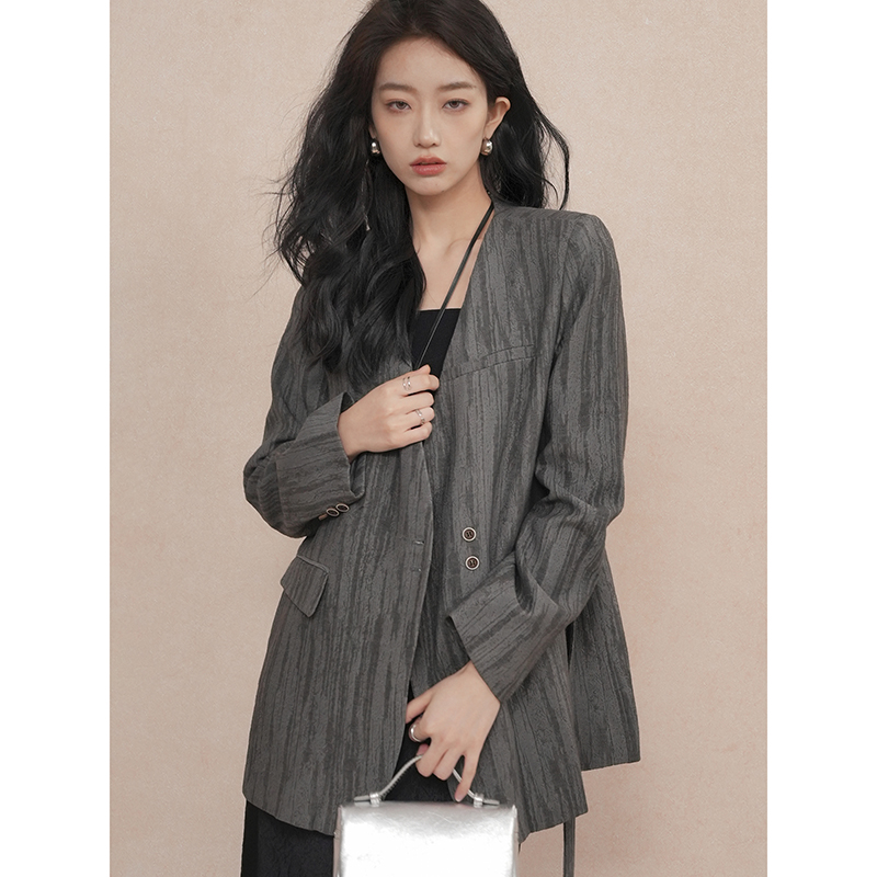 Темпераментный серый простой маленький костюм, женская блузка, 2025 весенне-осенний новый свободный приталенный костюм на шнуровке, модная куртка