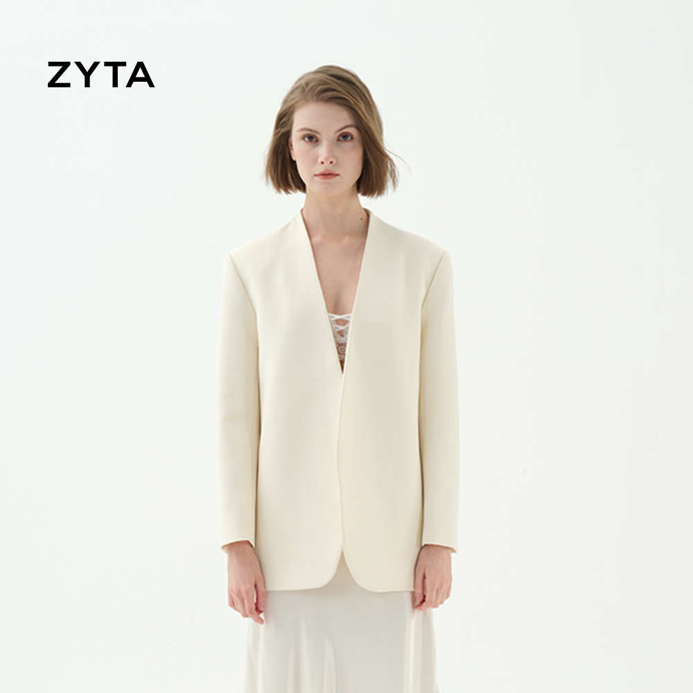 ZYTA2025 новый костюм-пиджак design sense нишевый минималистичный белый женский осенний маленький тонкий костюм на пуговицах