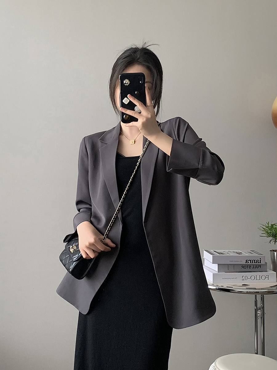 Купить Темпераментный серый простой маленький костюм, женская блузка, 2025 весенне-осенний новый свободный приталенный костюм на шнуровке, модная куртка на таобао