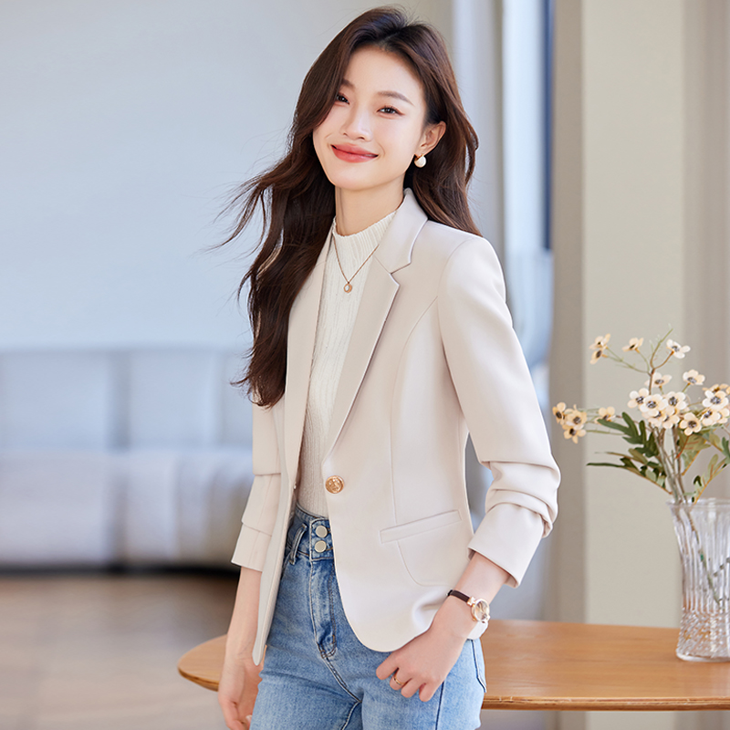 Модный бежевый маленький пиджак от костюма, женская мода, корейский стиль, западный стиль