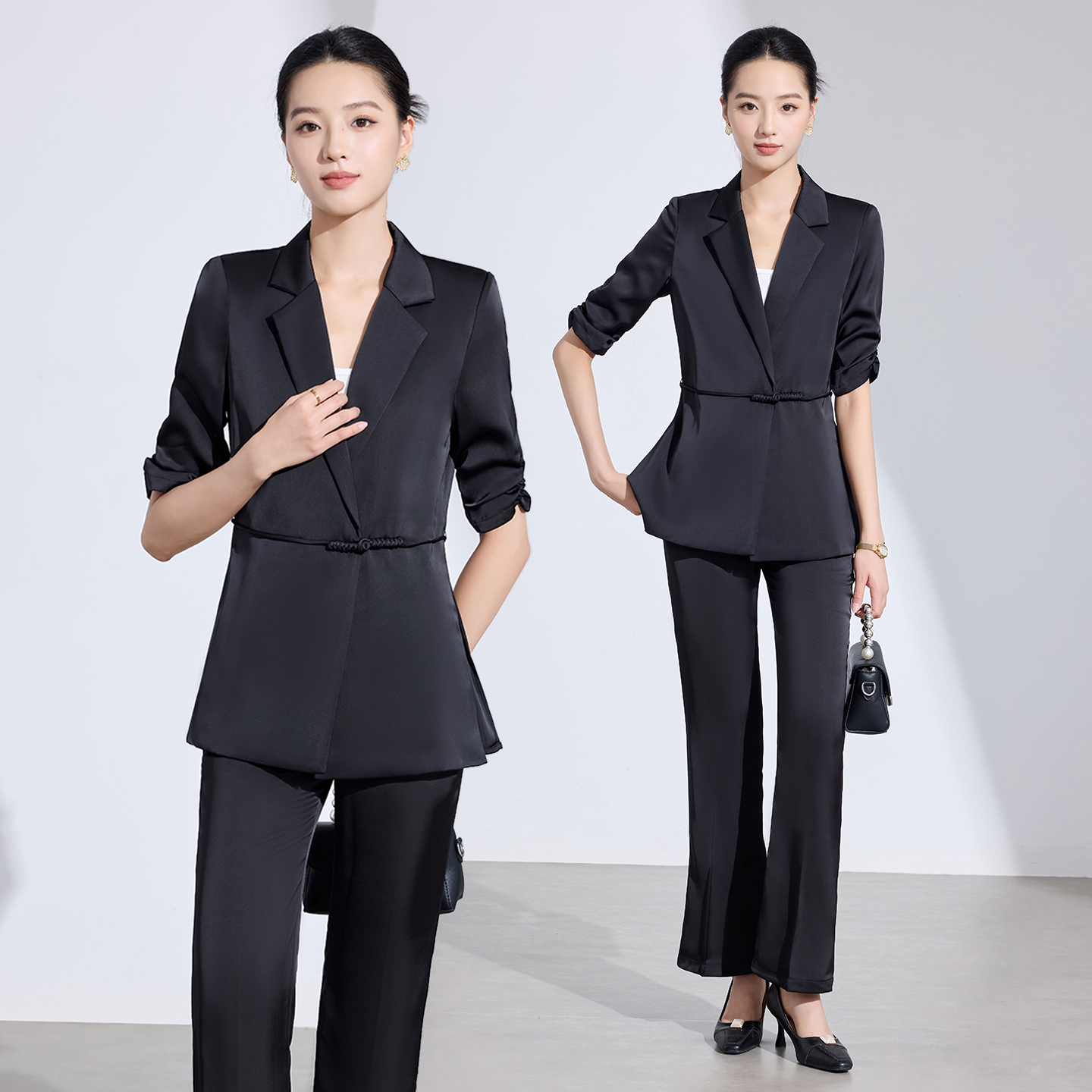 Высококлассная профессия 2025 костюм женский летний пригородный костюм высококлассное чувство китайского стиля ацетатный атласный пиджак