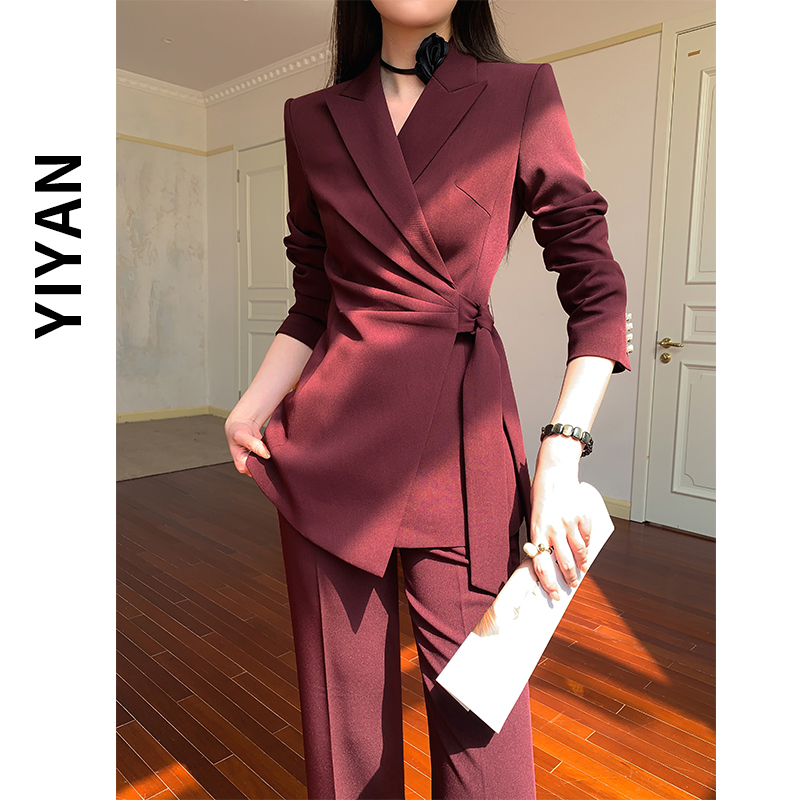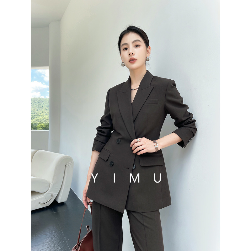Купить Коричневый пиджак YIMU, женский профессиональный модный костюм для конференций, новый весенне-осенний темпераментный комбинезон-двойка на таобао