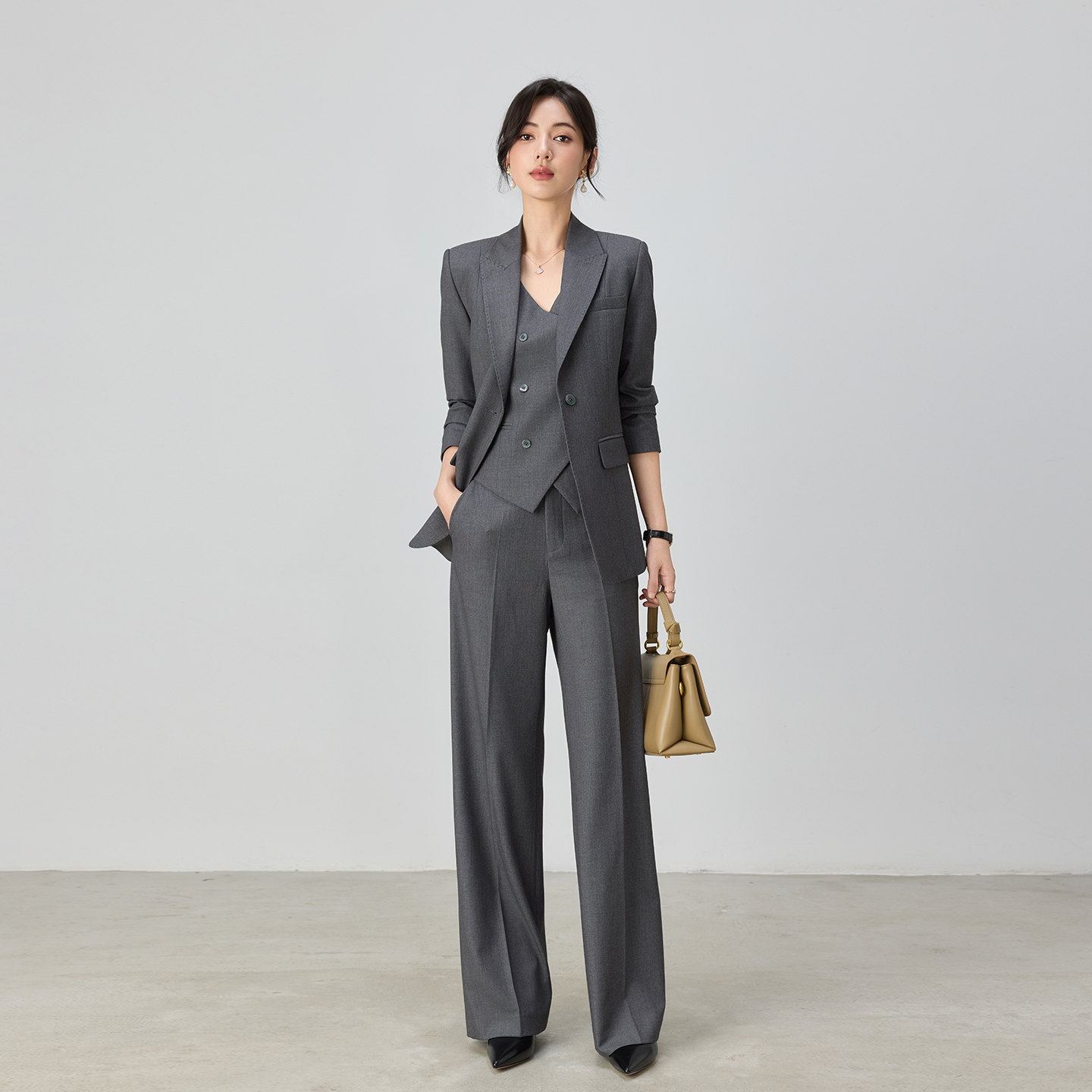 Купить Профессиональный костюм Siluya, жилет, женский серый высококлассный темпераментный костюм, пиджак, широкие брюки, костюм-тройка на таобао