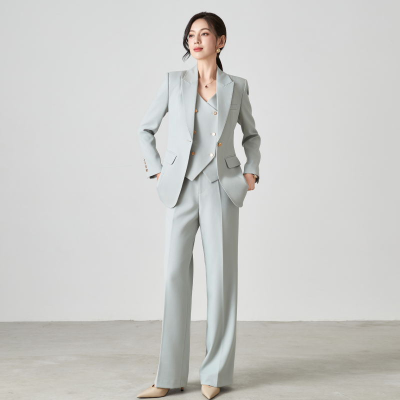 Купить Весна, осень и зима, новый высококачественный ледяной туман, синий пригородный элегантный модный профессиональный костюм, куртка, жилет, прямые брюки, костюм для женщин на таобао