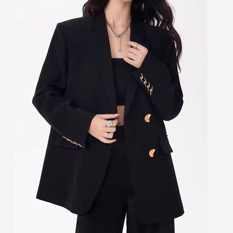Корейская версия черного пиджака для костюма женская весна 2025, новый стиль, маленький человек, дикий дизайн, свободный маленький пиджак для костюма