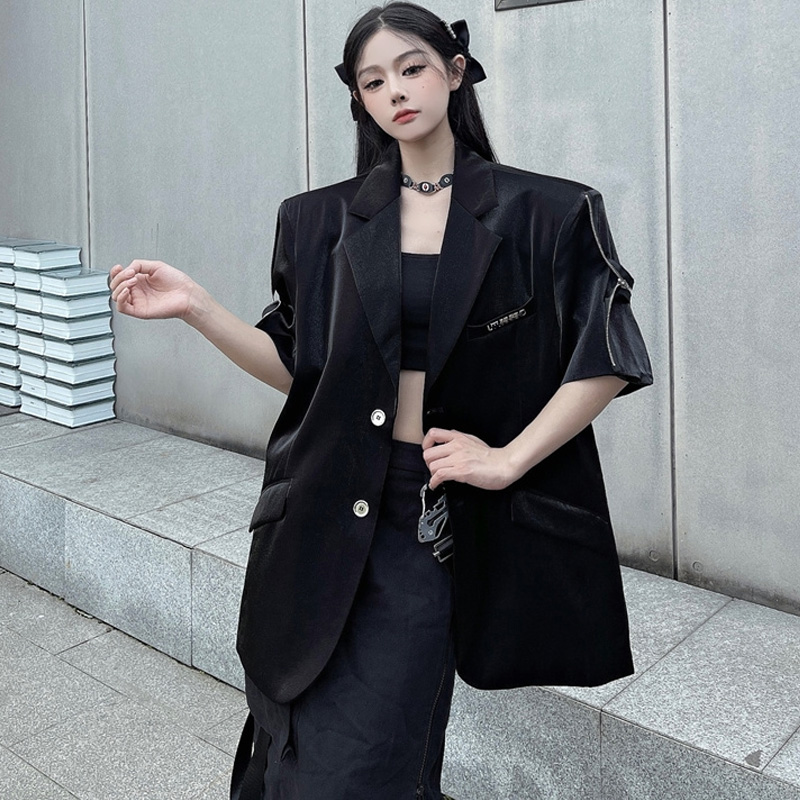 Высококачественный повседневный черный пиджак для костюма, женский весенне-осенний тонкий свободный модный простой пиджак для пригородных поездок под прямым углом