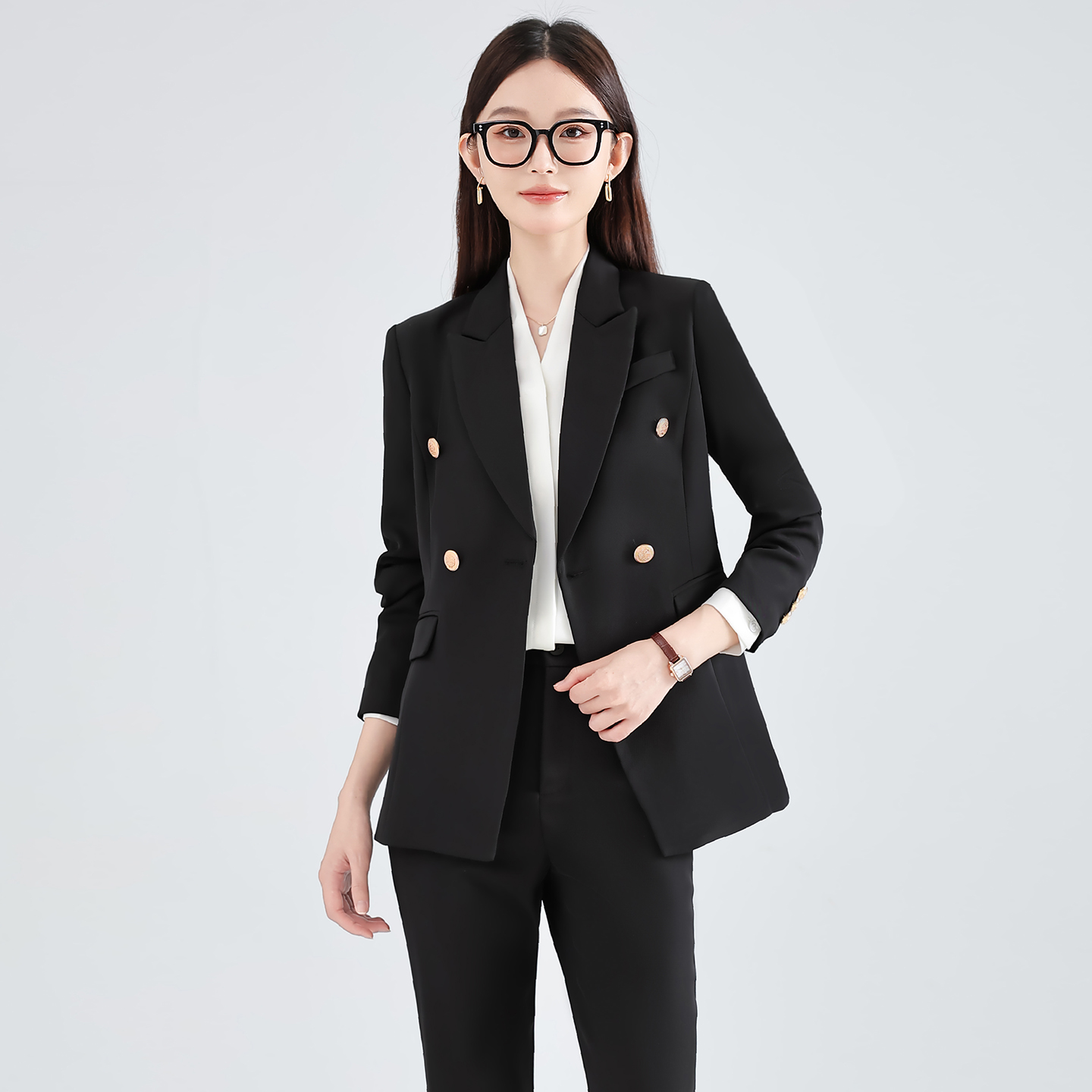 Купить Черный пиджак из ткани Rylance, модный темпераментный двубортный костюм, костюм для национальных экзаменов, собеседований, профессиональная официальная одежда на таобао