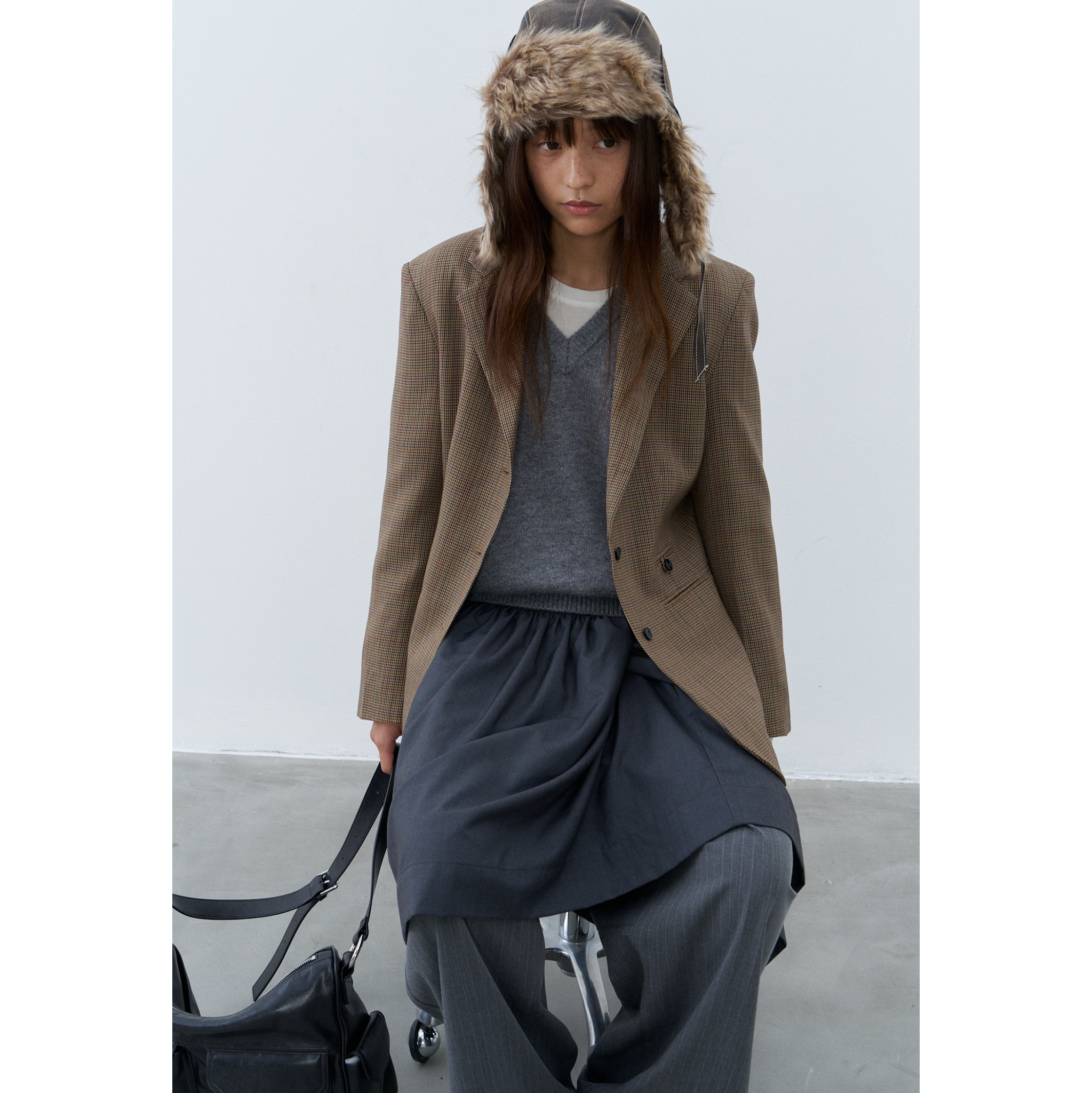 Yuan Yiling [V Home Show] Австралийский шерстяной пиджак с V-образным вырезом и длинными рукавами от дизайнера тяжелой промышленности, 25 осенних моделей