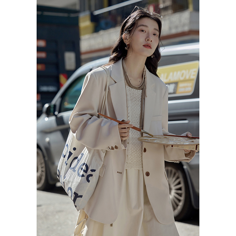 Средний белый пиджак для костюма, женская весенне-осенняя коллекция 2025 года, новый стиль, маленький костюм высокого класса, дизайн, нишевая официальная одежда