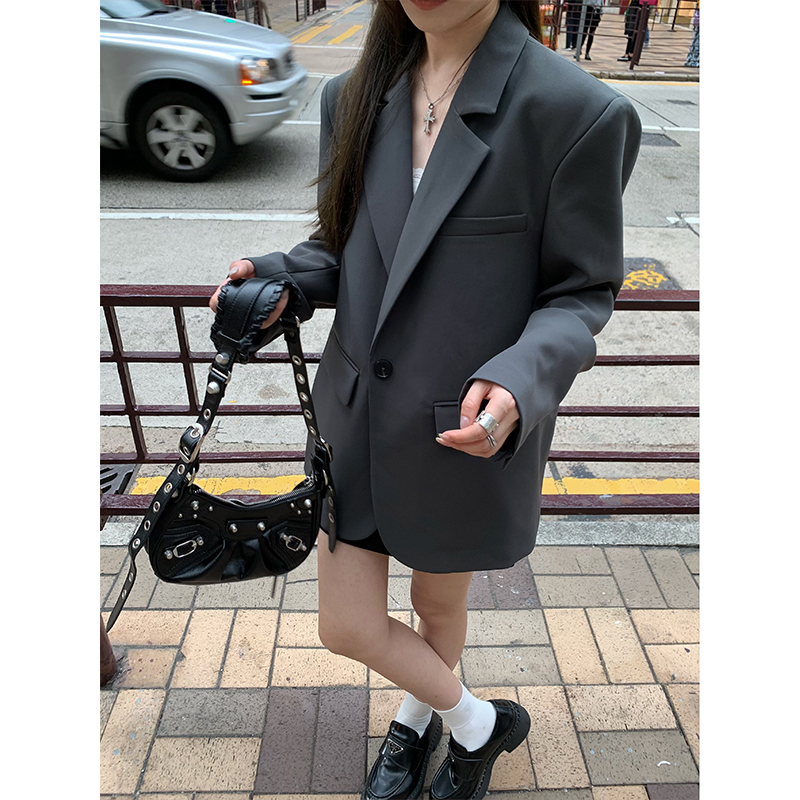 Купить Высококачественный серый пиджак для костюма, женский весенне-осенний костюм 2024 года, новый свободный черный костюм оверсайз для маленьких костюмов на таобао